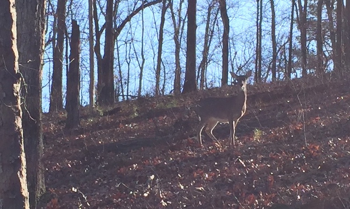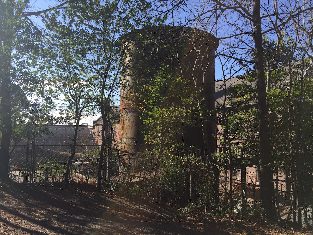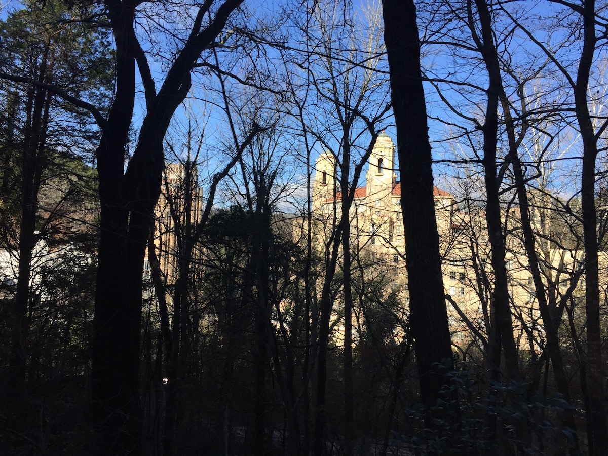 We stayed in the National Park’s campground around the corner from Bathhouse Row and the next morning drove up mountain tower. The roads curve tightly and vehicles over 30′ are prohibited. Yay for Class Bs! You can catch a glimpse of the road curve and angle through the trees in the photo below.