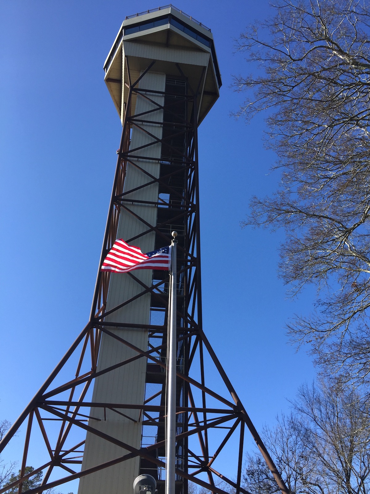 The observation tower was closed, but the we still managed to get a view of the Ouachita mountains and the town below.